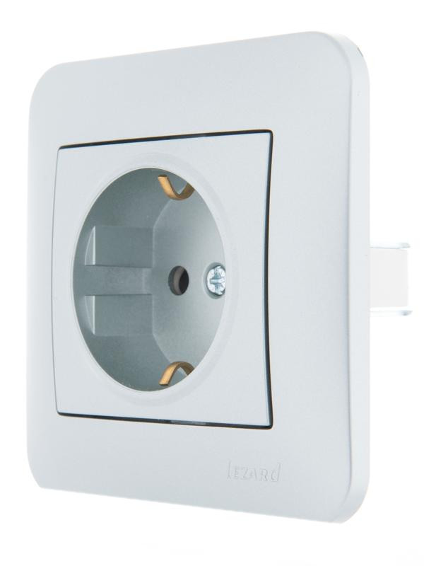 Розетка 1-м СП Karina с заземл. защ. шторки термопласт механизм матов. серебр. LEZARD 707-4388-124B LEZARD