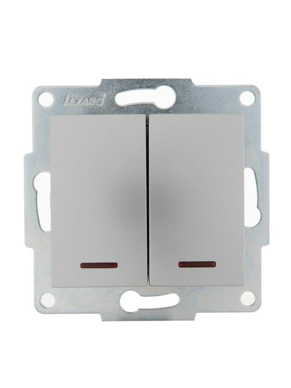 Выключатель 2-кл. 1п СП Karina 10А IP20 с подсветкой механизм матов. серебр. LEZARD 707-4388-112 LEZARD