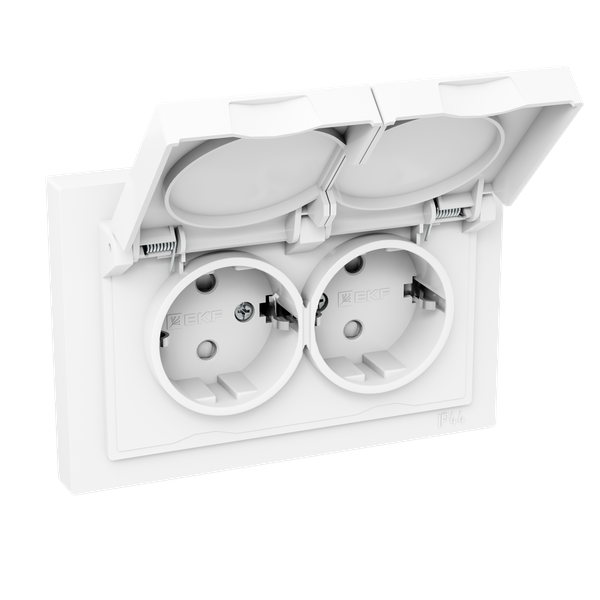 Розетка 2-м СП Эпика 16А IP44 с заземл. защ. шторки с рамкой с крышками механизм бел. EKF UP1-SOW-211-44 EKF
