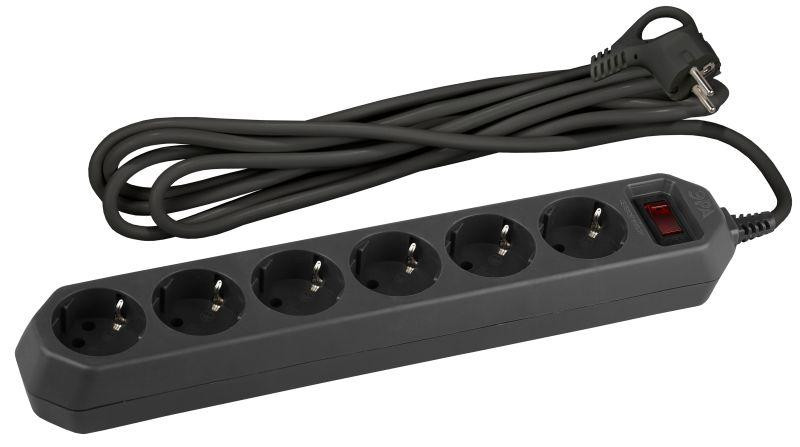 Удлинитель с сетевым фильтром 6х1.5м с заземл. 10А IP20 USF-6es-1.5m-B с выкл. с базов. защитой черн. Эра Б0037261 Эра