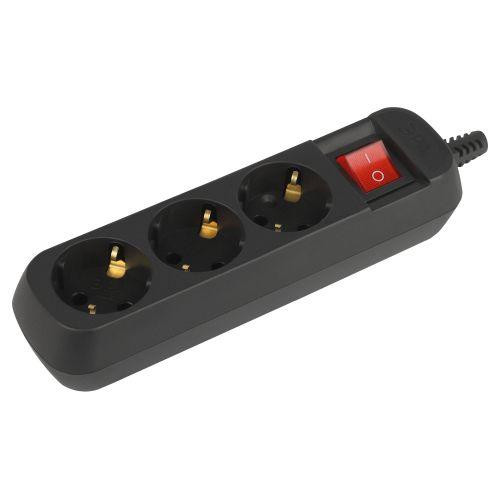 Колодка удлинителя 3-м с заземл. с выключателем черн. KX-3es-B Эра Б0061723 Эра