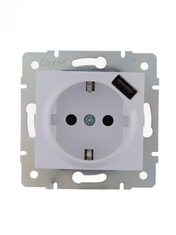 Розетка 1-м СП Karina 16А с заземл. с заряд. устройством USB механизм бел. LEZARD 707-0288-181 LEZARD