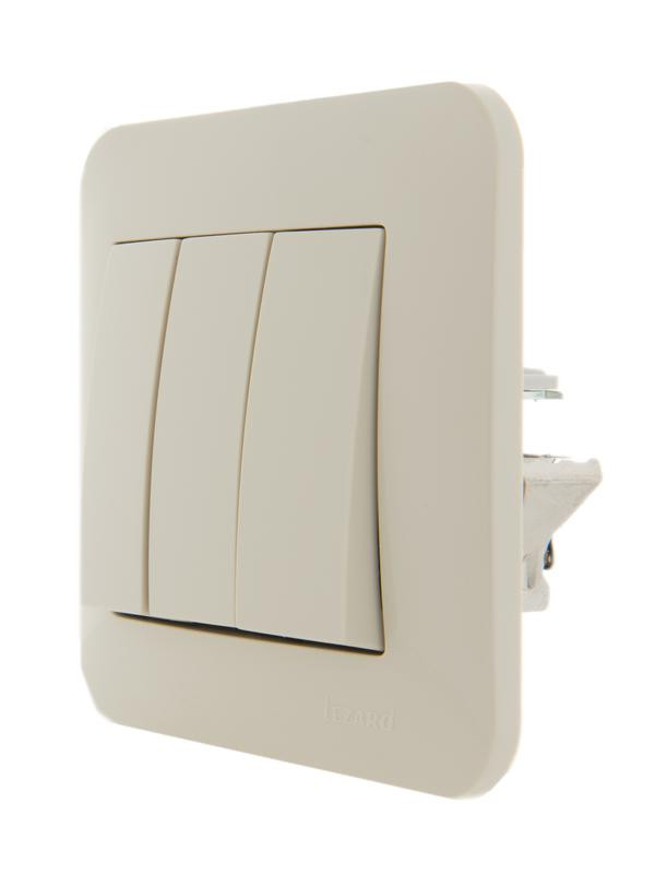 Выключатель 3-кл. 1п СП Karina 10А IP20 механизм крем. LEZARD 707-0388-109 LEZARD