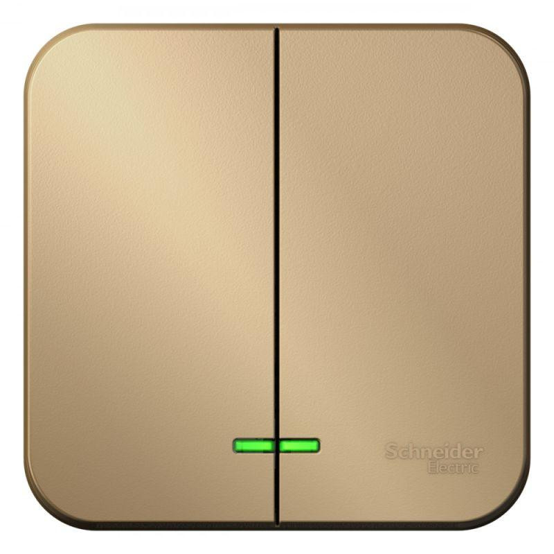 Выключатель 2-кл. ОП Blanca 10А IP20 (сх. 5) 250В с подсветкой с изолир. пластиной титан SE BLNVA105114