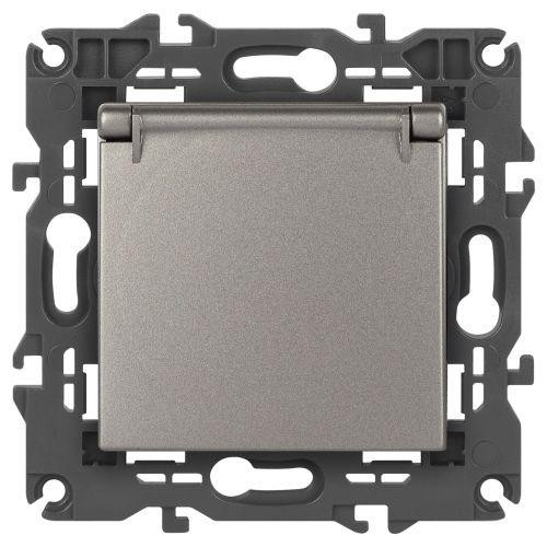 Розетка Elegance 14-2103-16 16А 250В 2P+E Schuko защ. шторки с крышкой титан Эра Б0065811 Эра