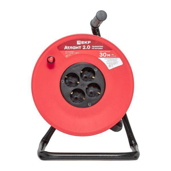 Удлинитель на катушке 4х30м без заземл. 6А IP20 Атлант 2.0 1.3кВт ПВС 2х0.75 PROxima EKF UKA02-06-275-4-30 EKF