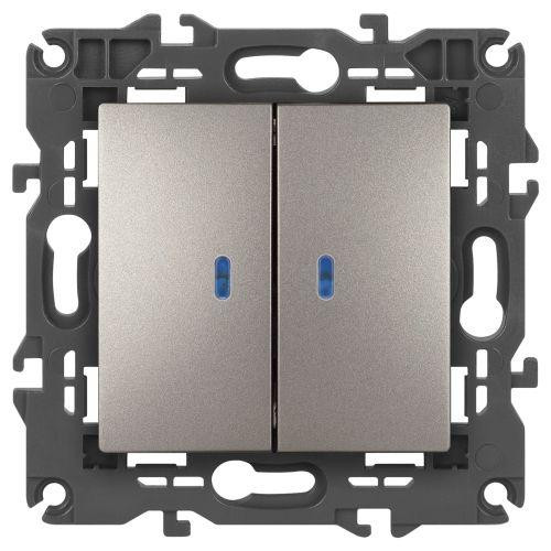 Выключатель 2-кл. Elegance 14-1105-16 250В 10АХ с подсветкой титан Эра Б0065789 Эра