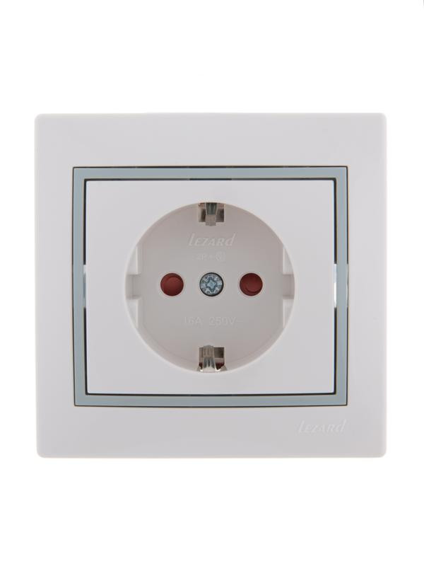 Розетка 1-м СП Mira 16А IP20 с заземл. защ. шторки с сер. вставкой керамика бел. LEZARD 701-0215-124 LEZARD