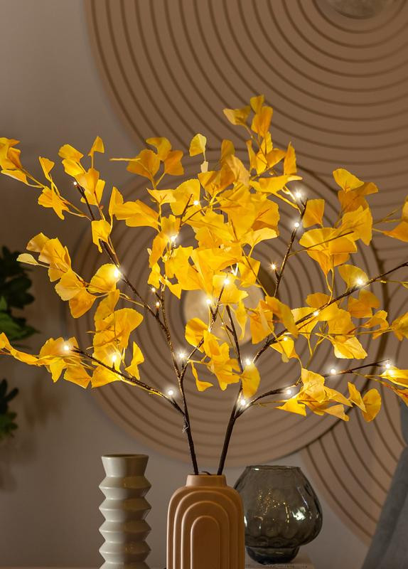 Ветвь гинкго имитация 90см 32LED тепл. бел. IP44 6ч таймер провод корич. 50см КОСМОС KOC_INT-B130 КОСМОС