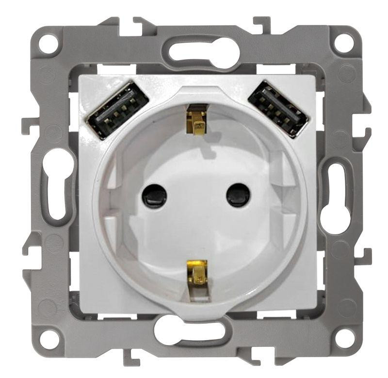 Розетка 16А 250В 2P+E с 2хUSB 5В-3А защ. шторки Elegance бел. 14-4109-01 ЭРА Б0047867 Эра