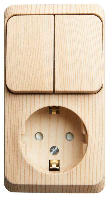 Блок ОП Этюд (1-м розетка с заземл. защ. шторки + 2-кл. выкл.) сосна SE BPA16-202D