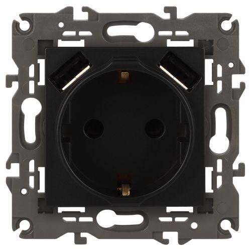 Розетка 16А 250В 2P+E с 2хUSB 5В-3А защ. шторки Elegance антрацит 14-4109-05 ЭРА Б0047871 Эра