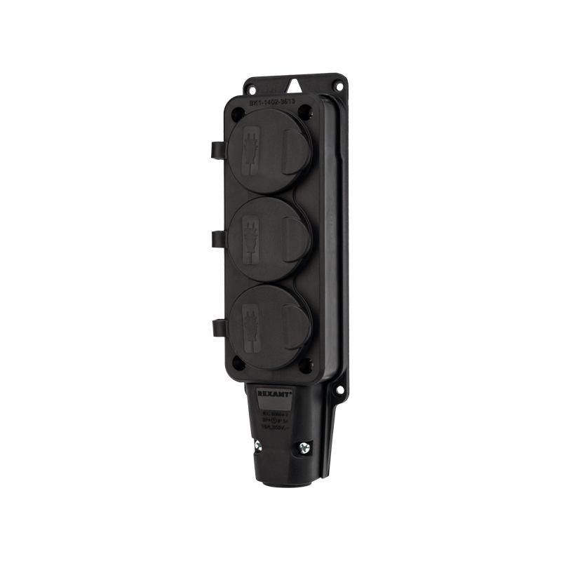 Розетка штепсельная трехместная влагозащ. с/з 16А IP54 каучук Rexant 111-113 Rexant