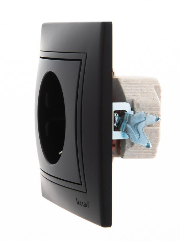 Розетка 1-м СП Mira с заземл. защ. шторки керамика черн. бархат LEZARD 701-4242-124 LEZARD