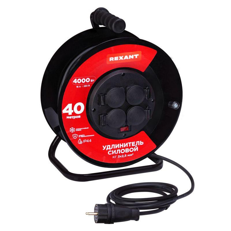Удлинитель на метал. катушке 4х40м с заземл. IP44 КГ 3х2.5кв.мм с выключателем с защ. крышками Rexant 13-5015 Rexant