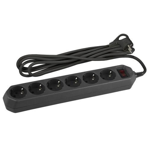 Удлинитель с сетевым фильтром 6х3м с заземл. 10А IP20 USF-6es-3m-B с выкл. с базов. защитой черн. Эра Б0037263 Эра