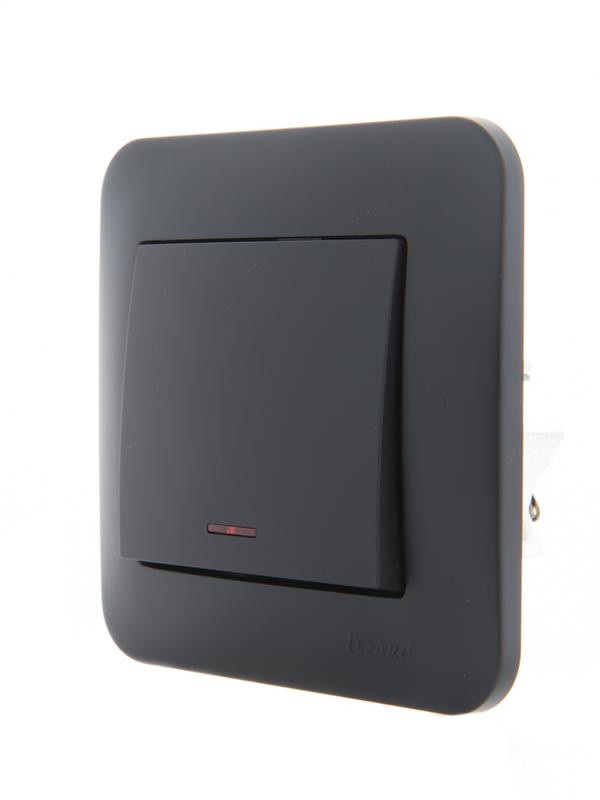 Выключатель 1-кл. 1п СП Karina 10А IP20 с подсветкой механизм черн. бархат LEZARD 707-4288-111 LEZARD