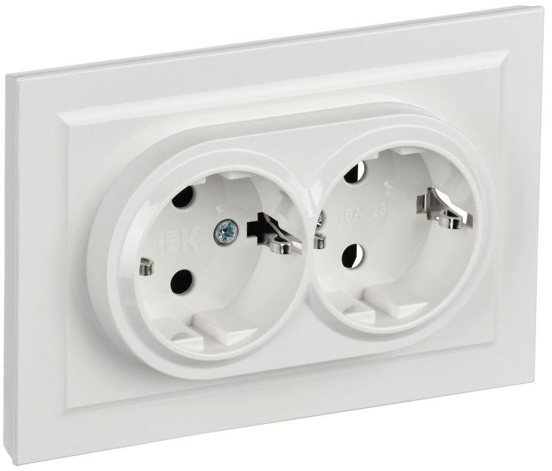 Розетка 2-м СП BRITE РС12-3-БрБ 16А в сборе с заземл. без защ. шторок бел. IEK BR-R21-16-K01-F IEK