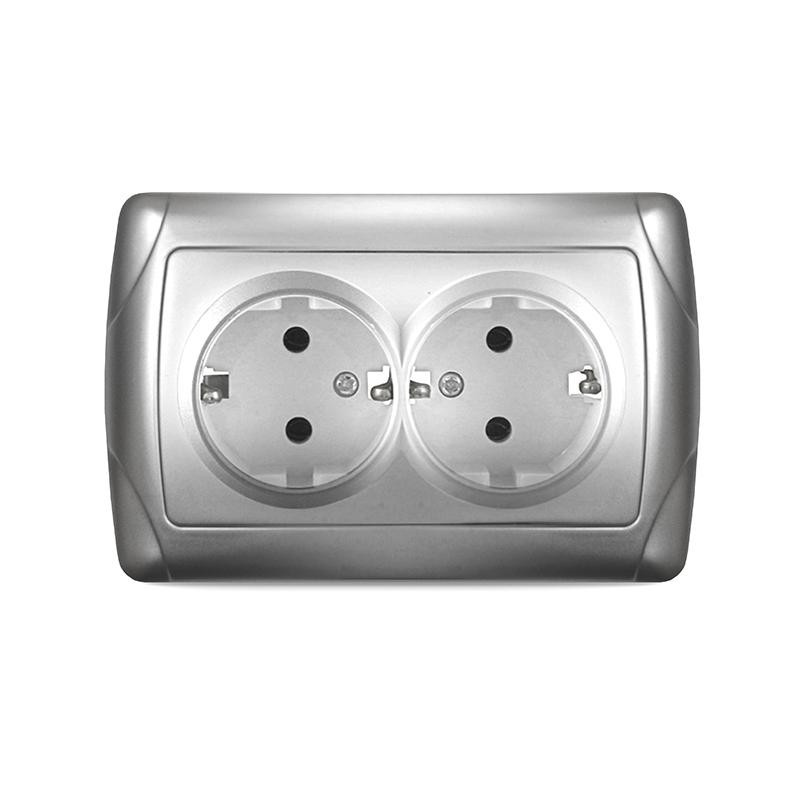 Розетка 2-м СП Маргарита 16А IP20 с заземл. серебр. UNIVersal М0128-S Universal