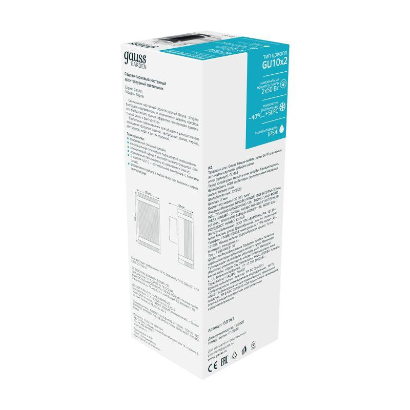 Светильник Enigma 2х50Вт GU10 IP54 100х100х300мм НТУ садово-парковый настенный архитектурный GAUSS GD162