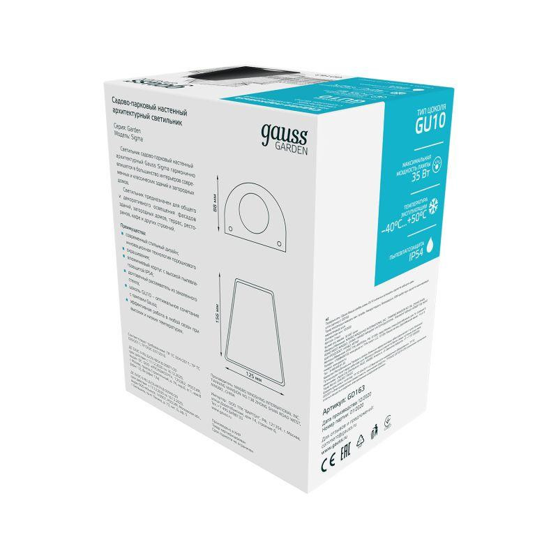 Светильник Sigma 1х35Вт GU10 IP54 125х125х156мм НТУ садово-парковый настенный архитектурный GAUSS GD163