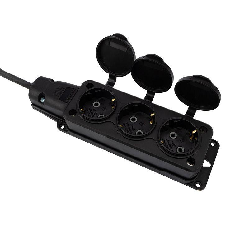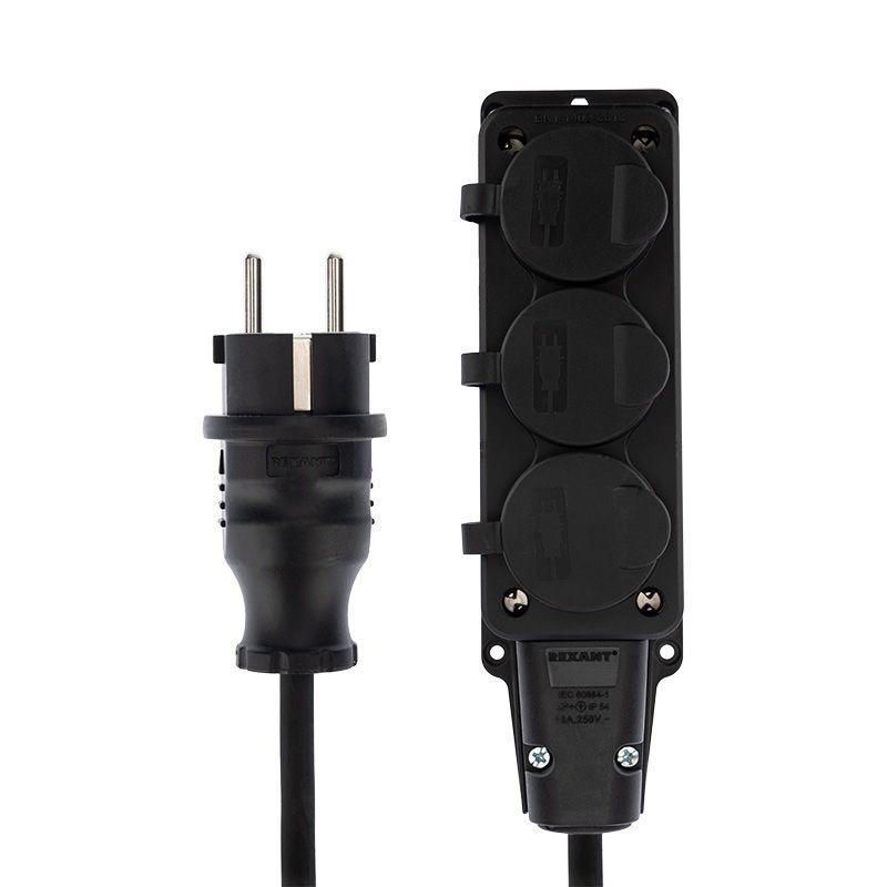 Удлинитель-шнур 1х10м с заземл. 6А IP44 1.3кВт ПВС 3х0.75 черн. Rexant 11-7089 Rexant