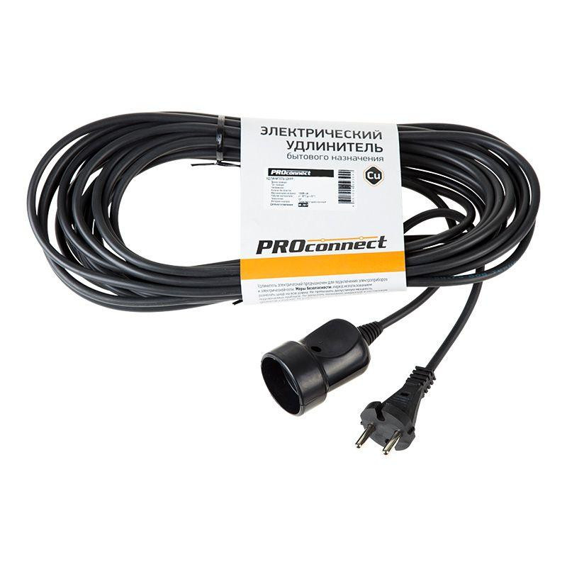 Удлинитель-шнур 1х10м без заземл. 6А IP20 1.3кВт ПВС 2х0.75 черн. PROCONNECT 11-7114 PROCONNECT