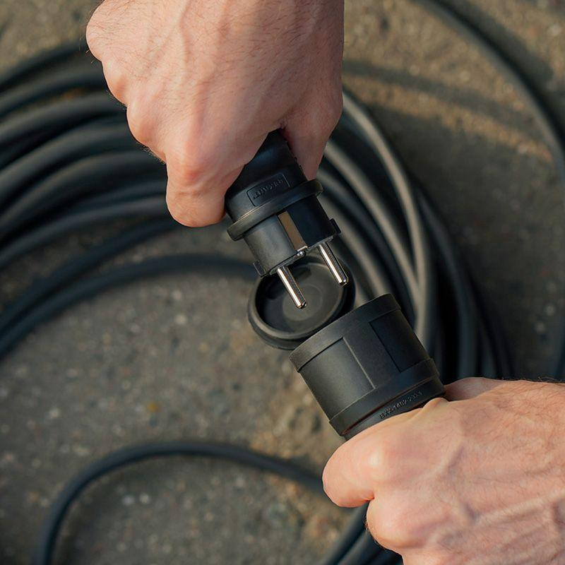 Удлинитель-шнур 1х20м с заземл. 6А IP44 1.3кВт ПВС 3х0.75 черн. Rexant 11-7090 Rexant