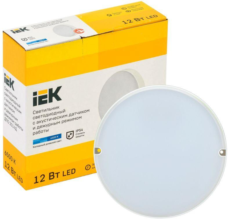 Светильник светодиодный ДПО 2014Д 12Вт 6500К IP54 дежурный круг с АД IEK LDPO3-2014D-12-6500-K01 IEK