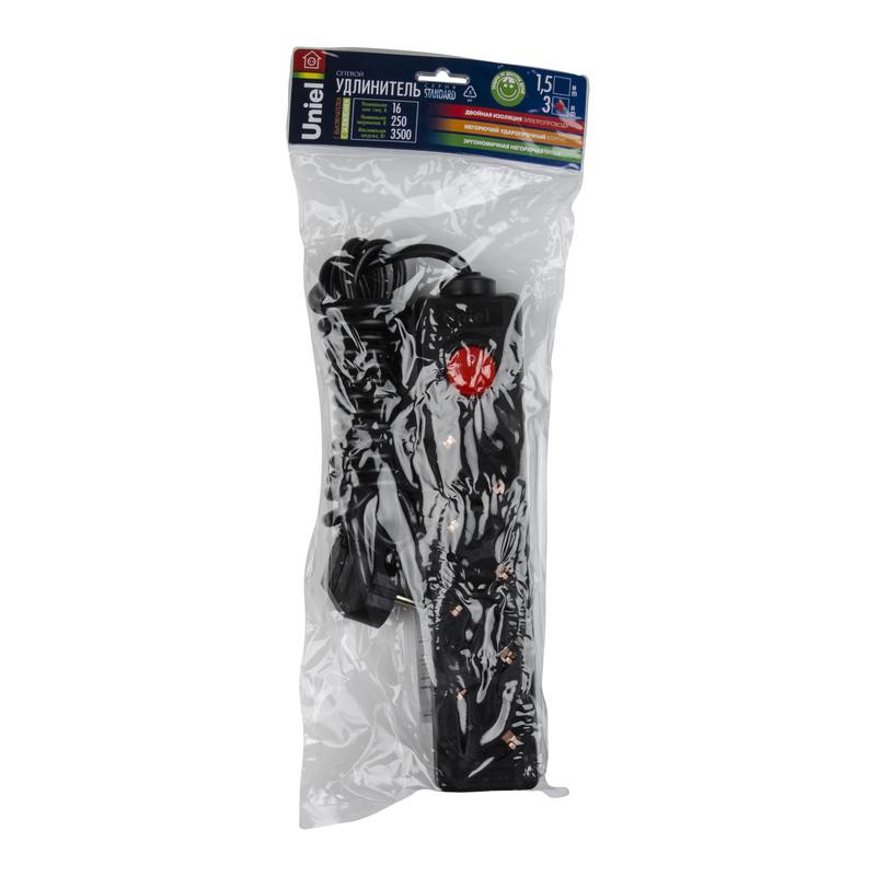 Удлинитель 3х3м без заземл. Standart S-CD3-3 Black черн. Uniel UL-00003604 Uniel