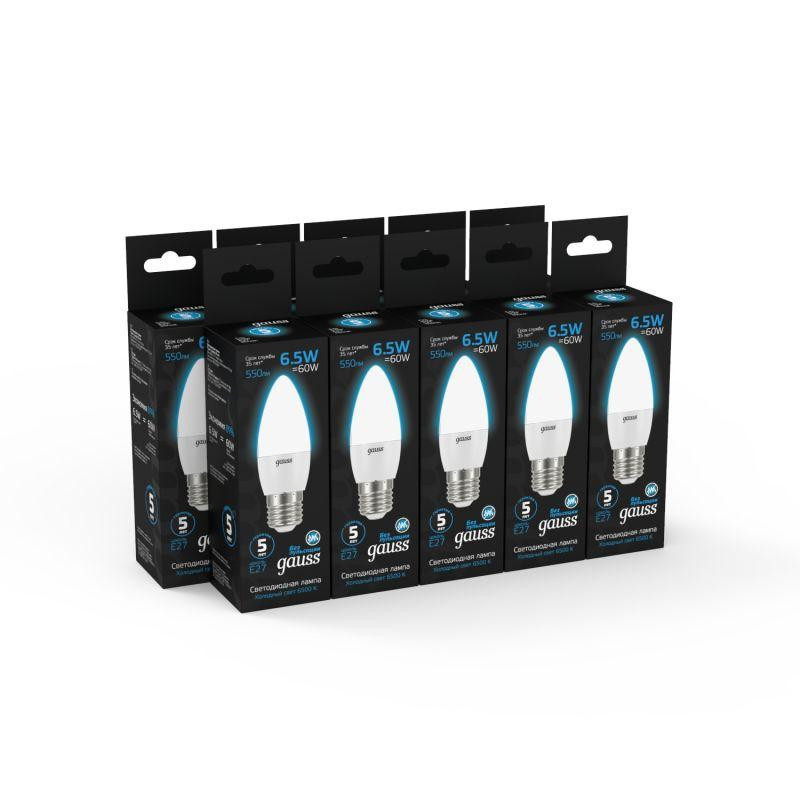 Лампа светодиодная Black 6.5Вт свеча 6500К холод. бел. E27 550лм GAUSS 103102307