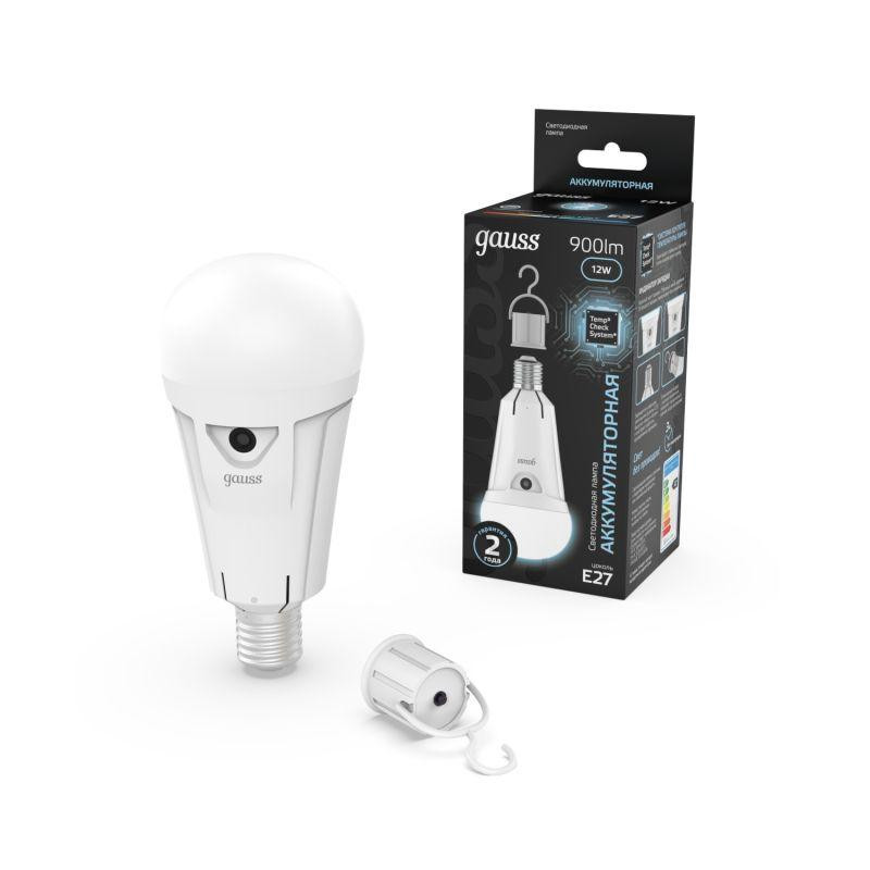 Лампа светодиодная Black 12Вт A80 грушевидная 4100К нейтр. бел. E27 900лм авар. аккум. Li-Ion GAUSS 102002212