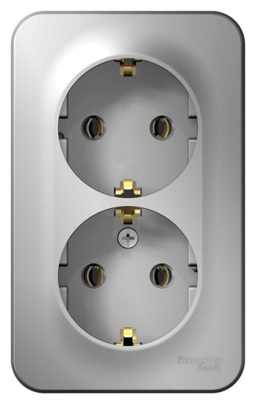 Розетка 2-м ОП Blanca 16А IP20 250В с заземл. без защ. шторок с изолир. пластиной алюм. SE BLNRA010213