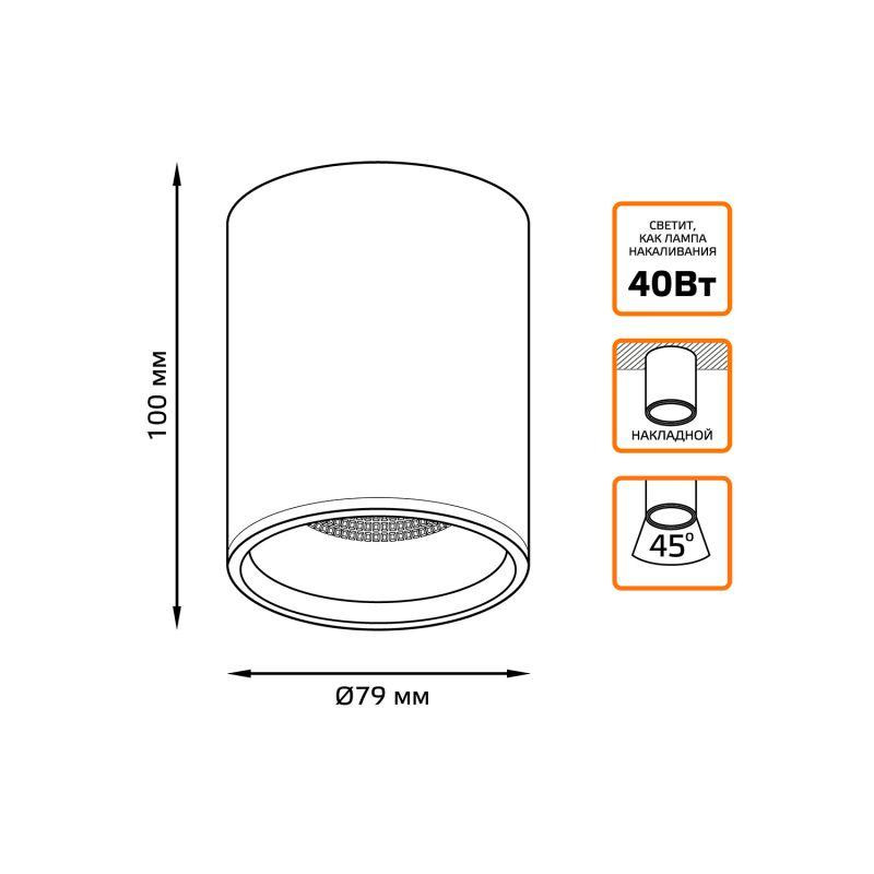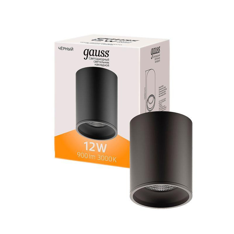 Светильник светодиодный Overhead 12Вт 3000К IP20 900лм 170-240В ДПО цилиндр накладной черн. GAUSS HD029