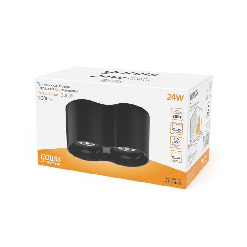 Светильник светодиодный Overhead 24Вт 3000К IP20 1600лм 170-240В ДПО двойн. цилиндр накладной черн. GAUSS HD033