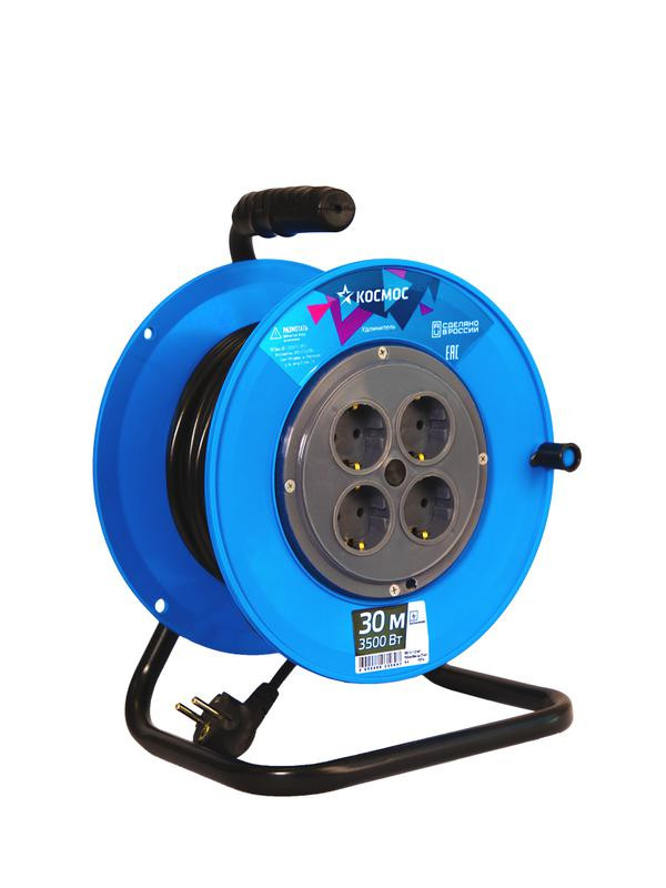 Удлинитель на катушке 4х30м с заземл. 16А 3.5кВт ПВС 3х1.5 КОСМОС YKKsm30m-4g-Z(16A) КОСМОС