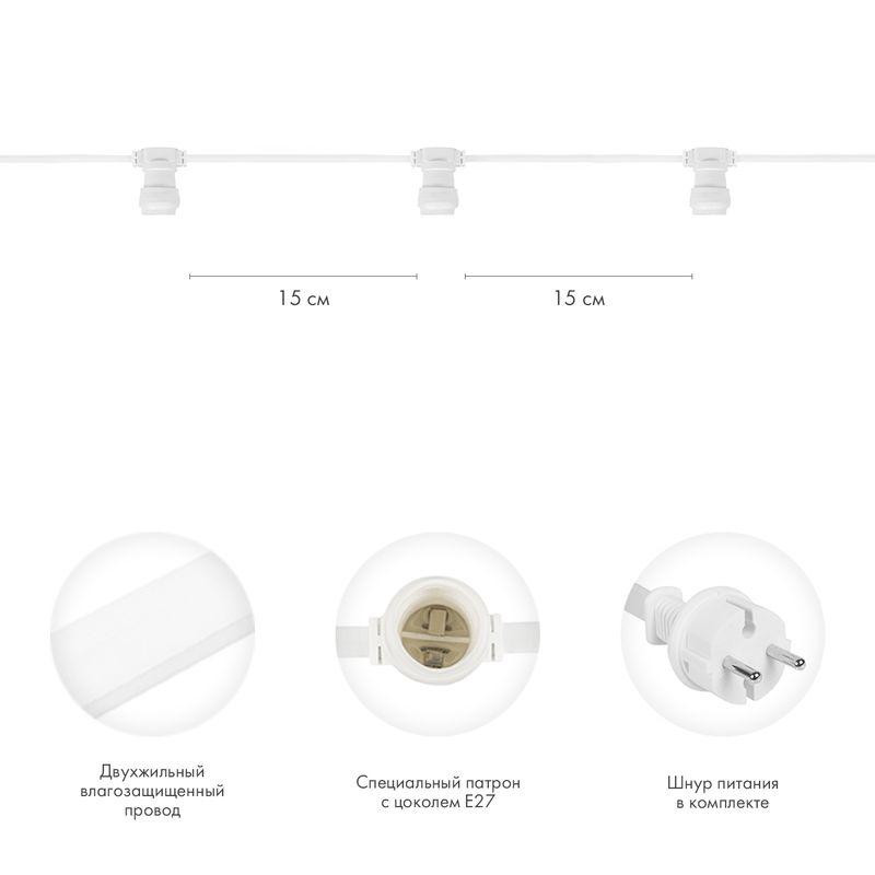 Гирлянда "Белт Лайт" 2жил. шаг 15см патроны E27 1320Вт IP65 влагостойкая провод бел. (уп.100м) Neon-Night 331-251