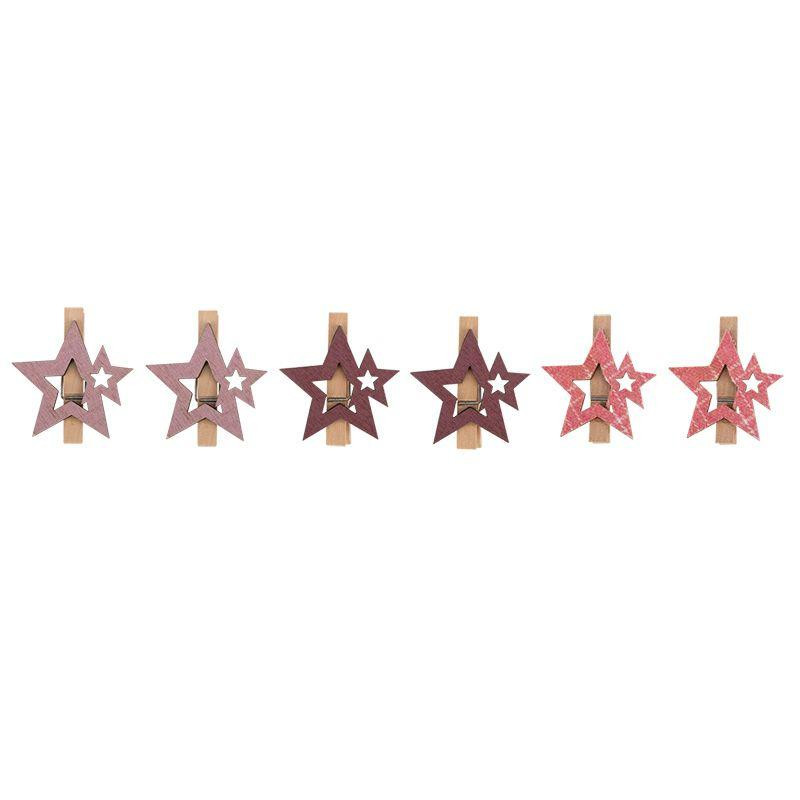 Прищепка деревянная "Звездочки" 16х4.5х1.3см IP20 роз. (уп.6шт) Neon-Night 504-034