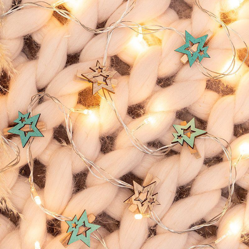 Прищепка деревянная "Звездочки" 16х4.5х1.3см IP20 бирюз. (уп.6шт) Neon-Night 504-033
