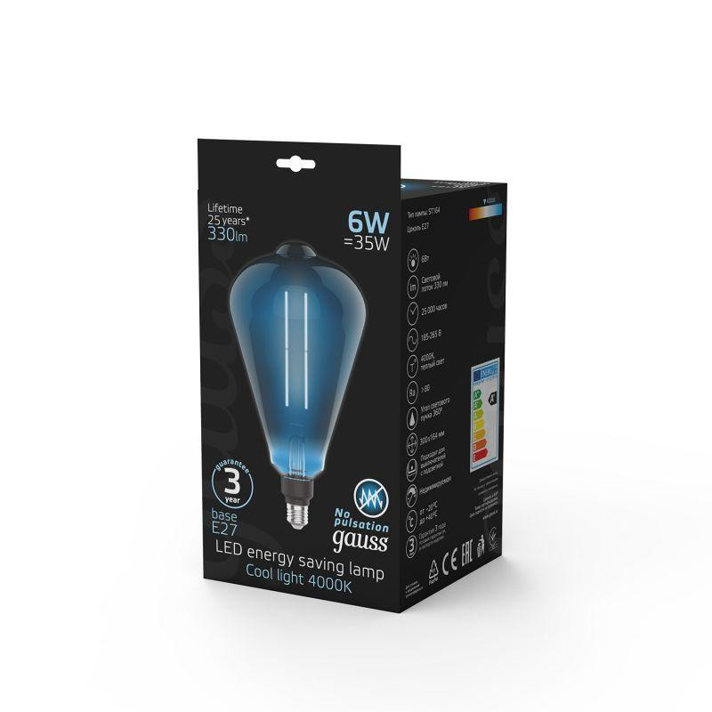 Лампа светодиодная филаментная Black Filament 6Вт ST164 тонированная 4000К нейтр. бел. E27 330лм GAUSS 157802205