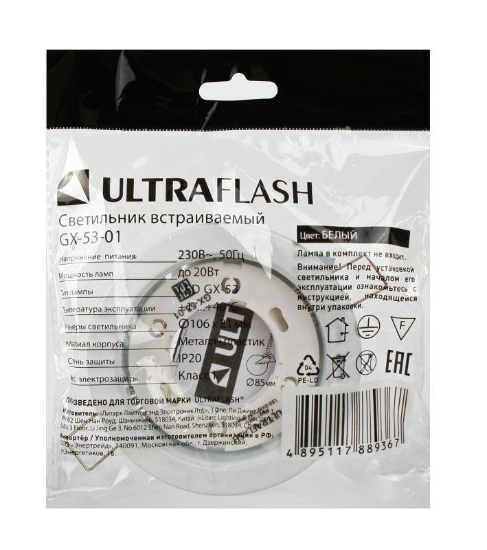 Светильник точечный GX-53-01 220В встраив. метал. бел. Ultraflash 14055 Ultraflash