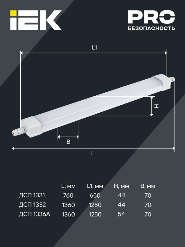 Светильник светодиодный ДСП 1336А 36Вт 6500К IP65 3ч 1250мм аварийный IEK LDSP6-1336A-3-36-6500-K01 IEK