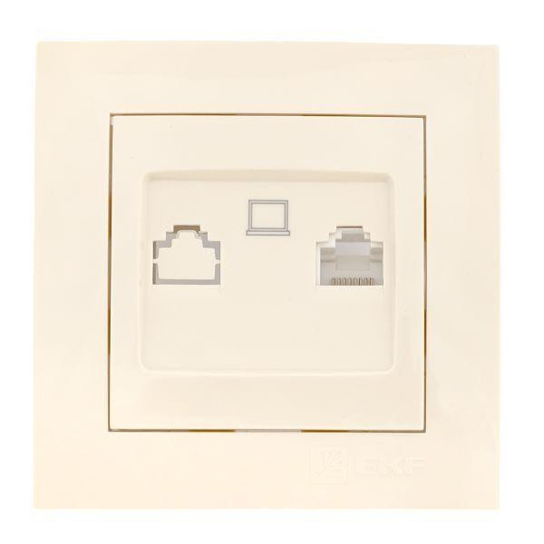 Розетка компьютерная 2-м СП Валенсия RJ45 крем. PROxima EKF EWK02-035-20 EKF