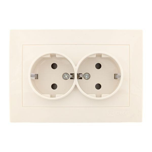Розетка 2-м СП Валенсия 16А IP20 с заземл. защ. шторки крем. PROxima EKF EWR16-128-20 EKF