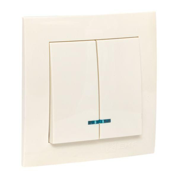 Выключатель 2-кл. СП Валенсия 10А IP20 с индикатором крем. PROxima EKF EWV10-123-20 EKF