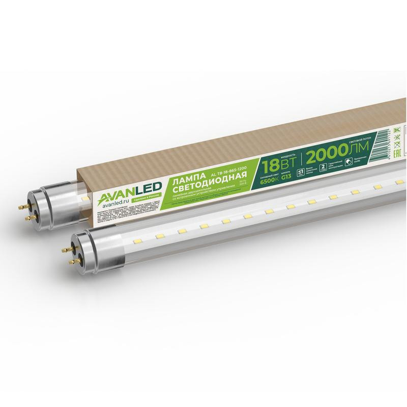 Лампа светодиодная AL T8-18-865-1200 18Вт прозрачная 6500К холод. бел. G13 2000лм 195-265В (пр-во РФ) AVANLED 11212651