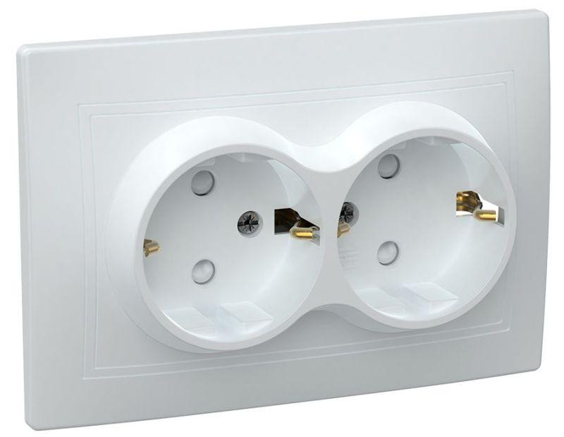 Розетка 2-м СП Кварта РСш12-3-КБ 16А IP20 с заземл. защ. шторки бел. IEK ERK21-K01-16-DM IEK