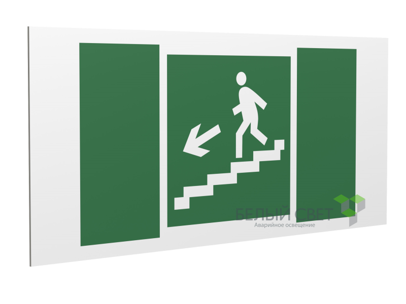 Знак безопасности PP-36162.E14"Напр. к эвакуац. выходу по лестн. вниз (лев.)" Белый свет a18633