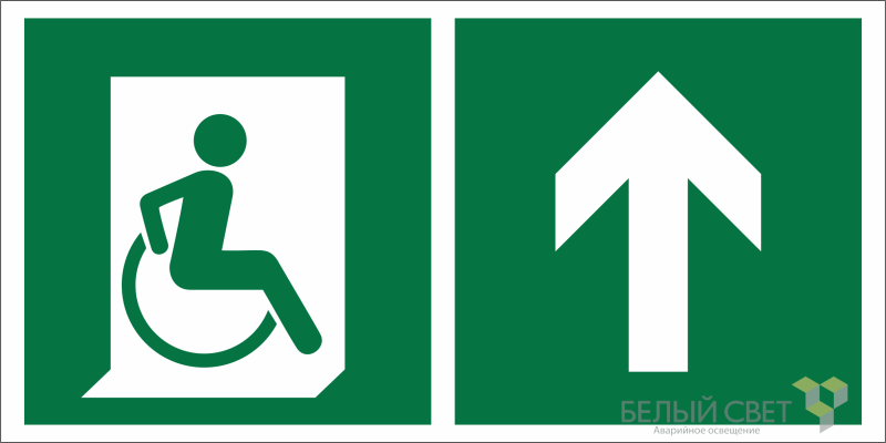 Знак безопасности BL-3517.E69"Напр. движения к эвакуац. выходу МГН прямо" Белый свет a18615