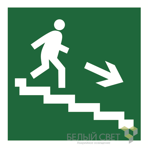 Знак безопасности NPU-2424.E14"Напр. к эвакуац. выходу по лестн. вниз (лев.)" Белый свет a11041
